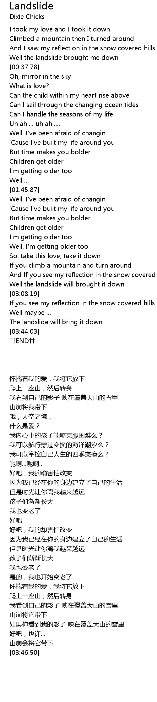 | [00:32.86] | Well the landslide brought me down |
