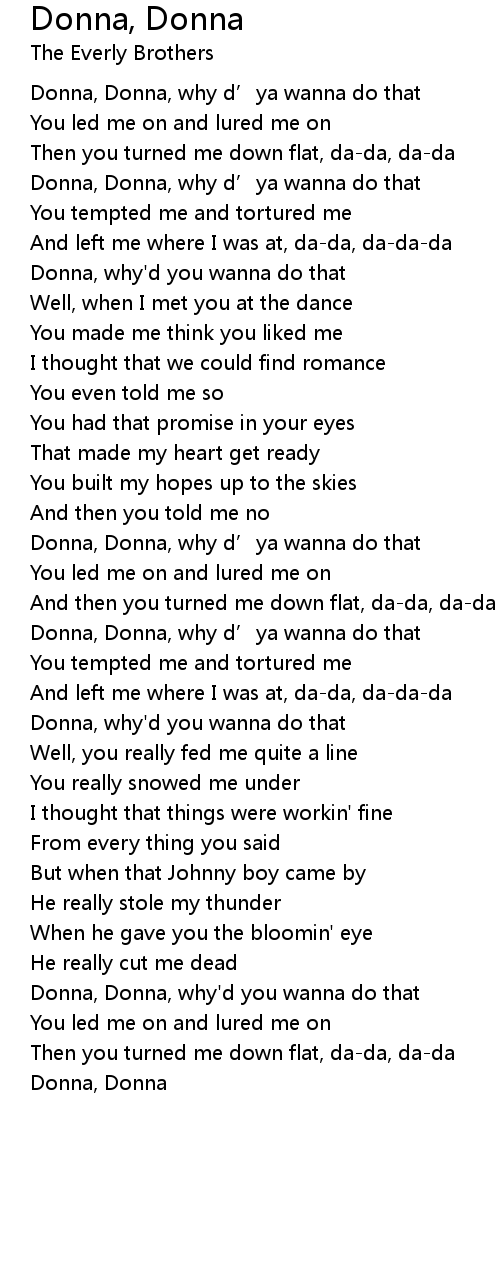 | Donna, Donna, why' d you wanna do that | |