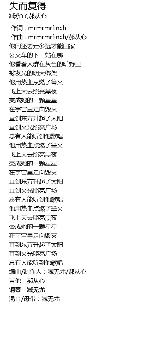 | [00:01.000] | zuo qu : mrmrmrfinch hao cong xin |