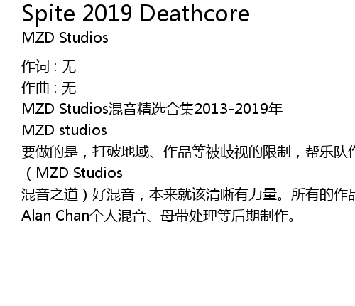 | (MZD Studios 混音之道)好混音,本来就该清晰有力量。所有的作品均为Jerome Alan Chan个人混音、母带处理等后期制作。 |