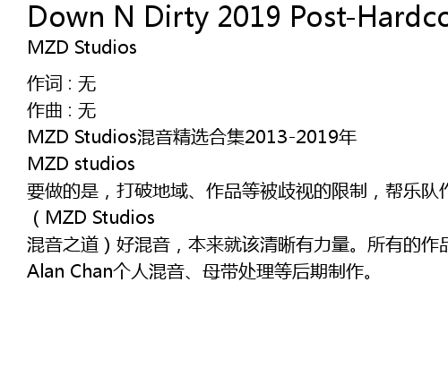 | (MZD Studios 混音之道)好混音,本来就该清晰有力量。所有的作品均为Jerome Alan Chan个人混音、母带处理等后期制作。 |