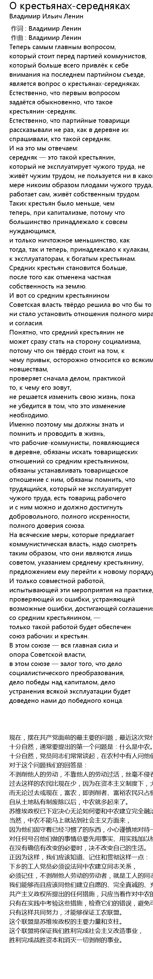 [00:00.300] Теперь самым главным вопросом, который стоит перед партией коммунистов, который больше всего привлёк к себе внимания на последнем партийном съезде, является вопрос о крестьянах-середняках.