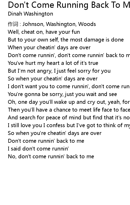 | Don' t come runnin', don' t come runnin' back to me | |