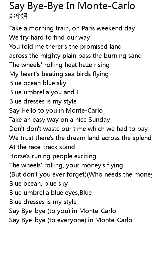 | Say Bye-bye (to you) in Monte-Carlo | |