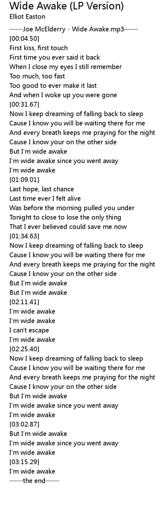 | [00:03.31] | ——Joe McElderry - Wide Awake.mp3—— |