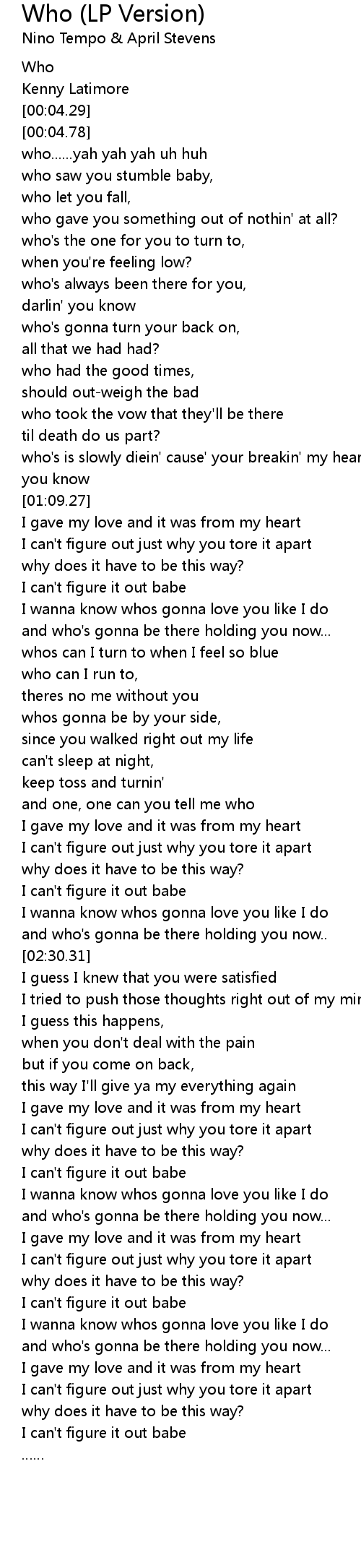 | [03:28.19] | I can't figure out just why you tore it apart |