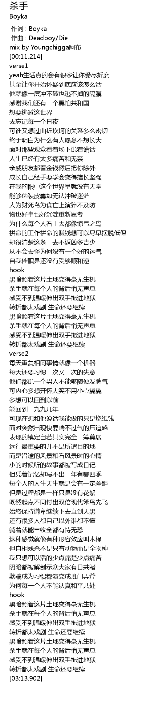 | [00:06.119] | mix by Youngchigga阿布 |