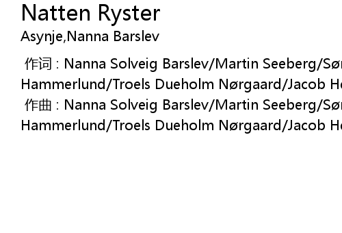 | [00:00.000] | 作曲 : Nanna Solveig Barslev/Martin Seeberg/Søren Hammerlund/Troels Dueholm Nørgaard/Jacob Hee Lindhardt Lund |