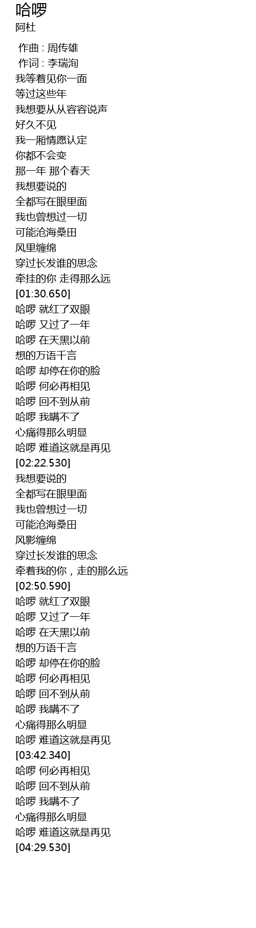 | [04:22.750] | 哈啰 难道这就是再见 |