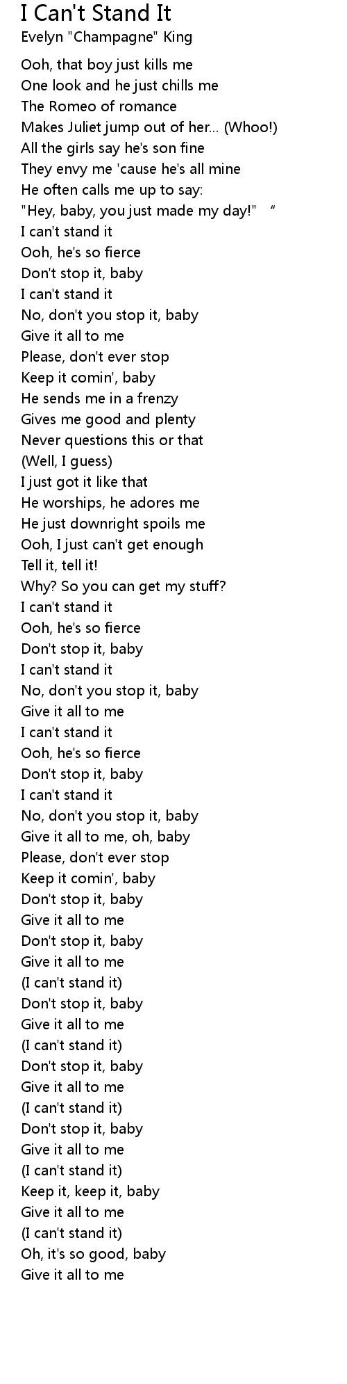| Song | I Can't Stand It |