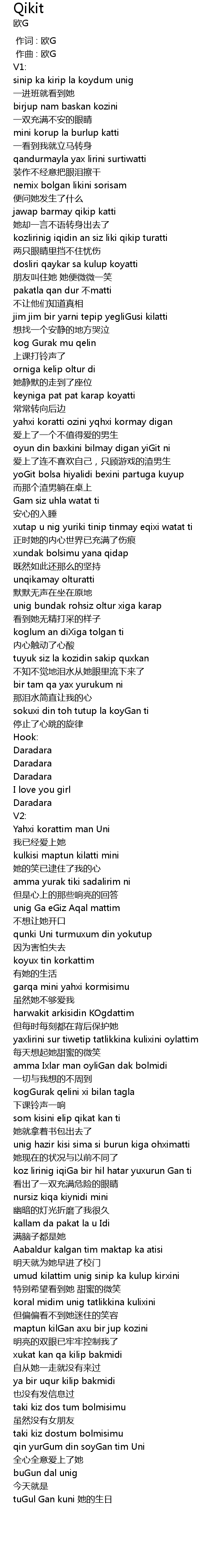 | [02:06.593] | koz lirinig iqiGa bir hil hatar yuxurun Gan ti |