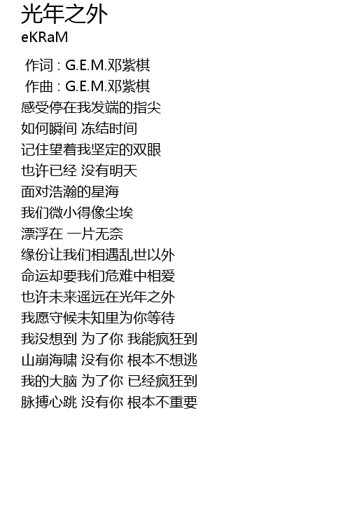 | [00:00.000] | 作词 : G.E.M.邓紫棋 |