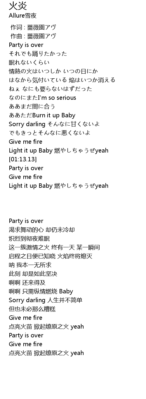 | [00:55.07] | Light it up Baby 燃やしちゃうぜyeah |