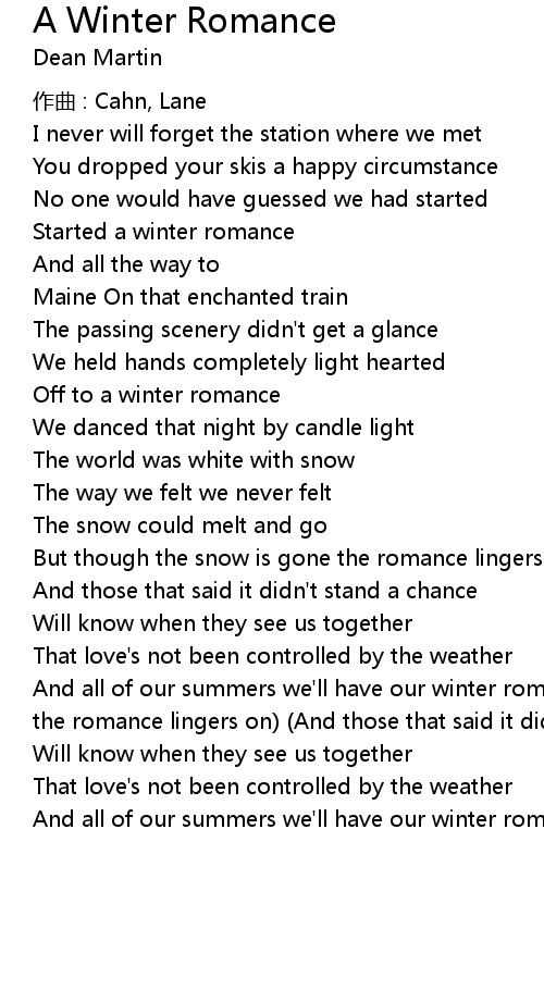 | And all of our summers we' ll have our winter romance Though the snow is gone the romance lingers on And those that said it didn' t stand a chance | |