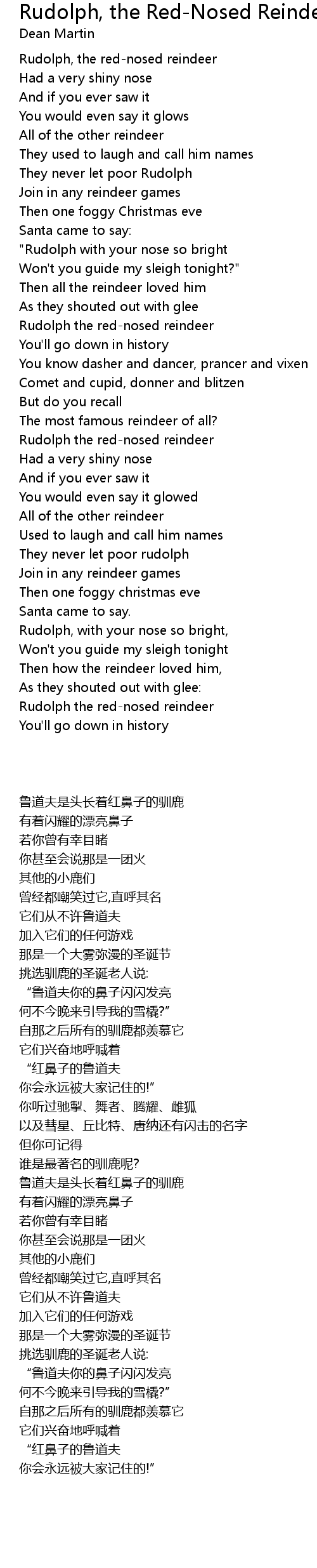 Rudolph, the Red-Nosed Reindeer Lyrics