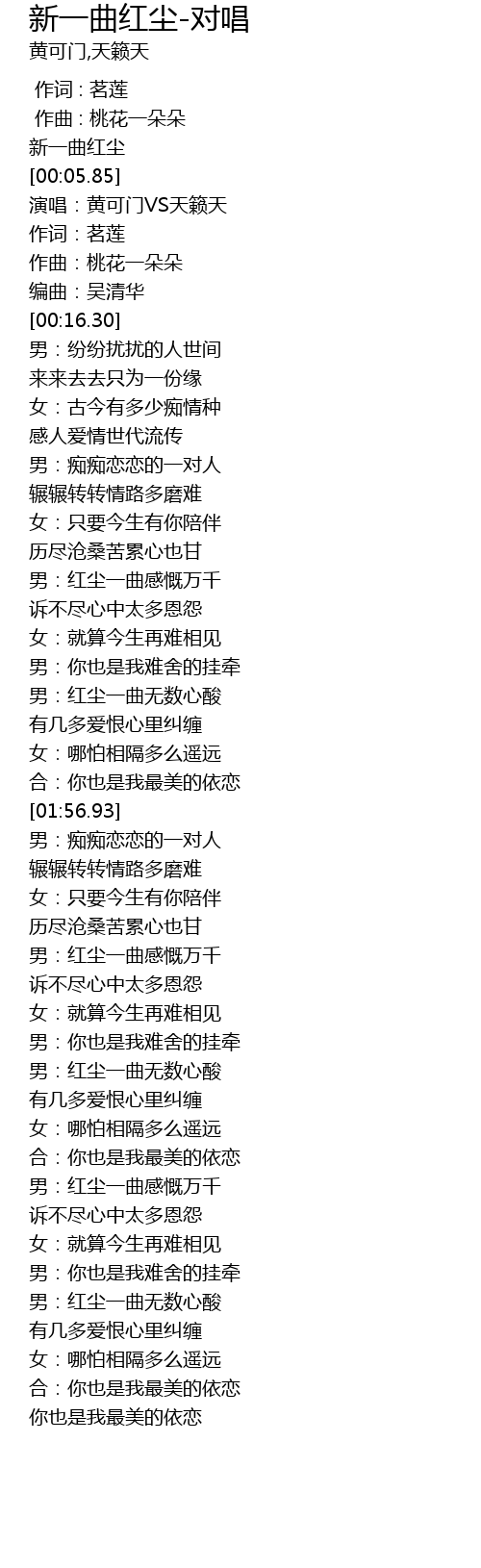 | [00:04.11] | 新一曲红尘 |
