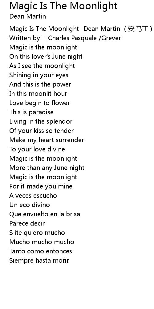 | [00:00.00] | Magic Is The Moonlight Dean Martin ān mǎ dīng |