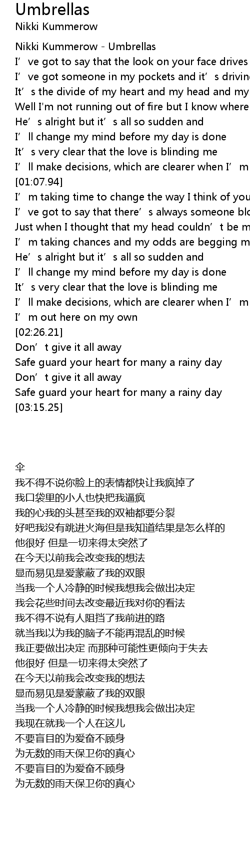 | [00:00.00] | Nikki Kummerow Umbrellas |