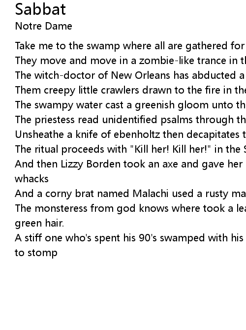 Take me to the swamp where all are gathered for the Sabbat, Sabbat |