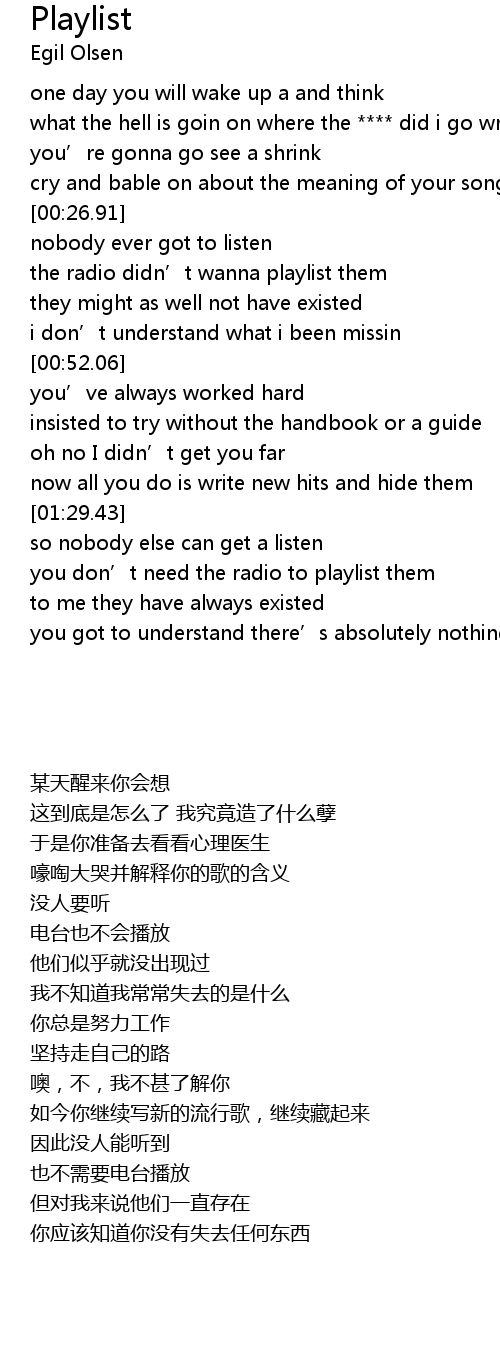 | [00:19.91] | cry and bable on about the meaning of your songs |