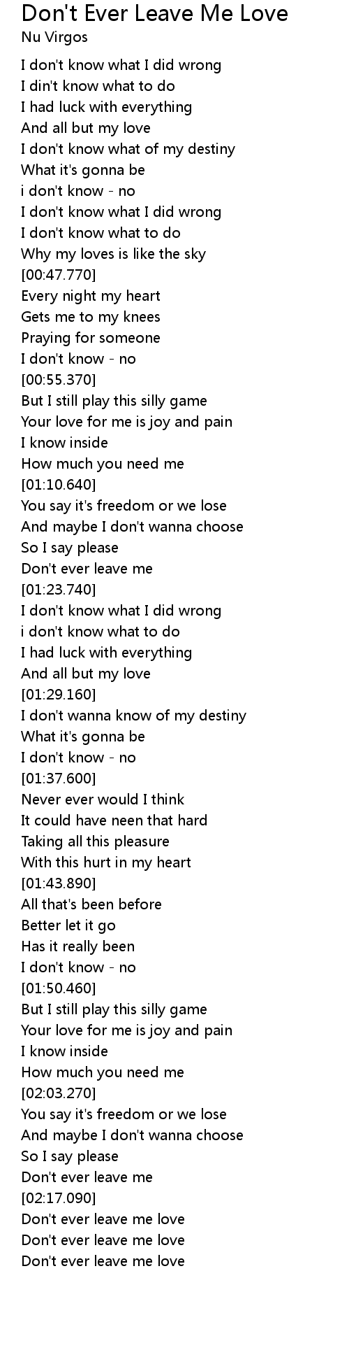 Don't ever leave me love |