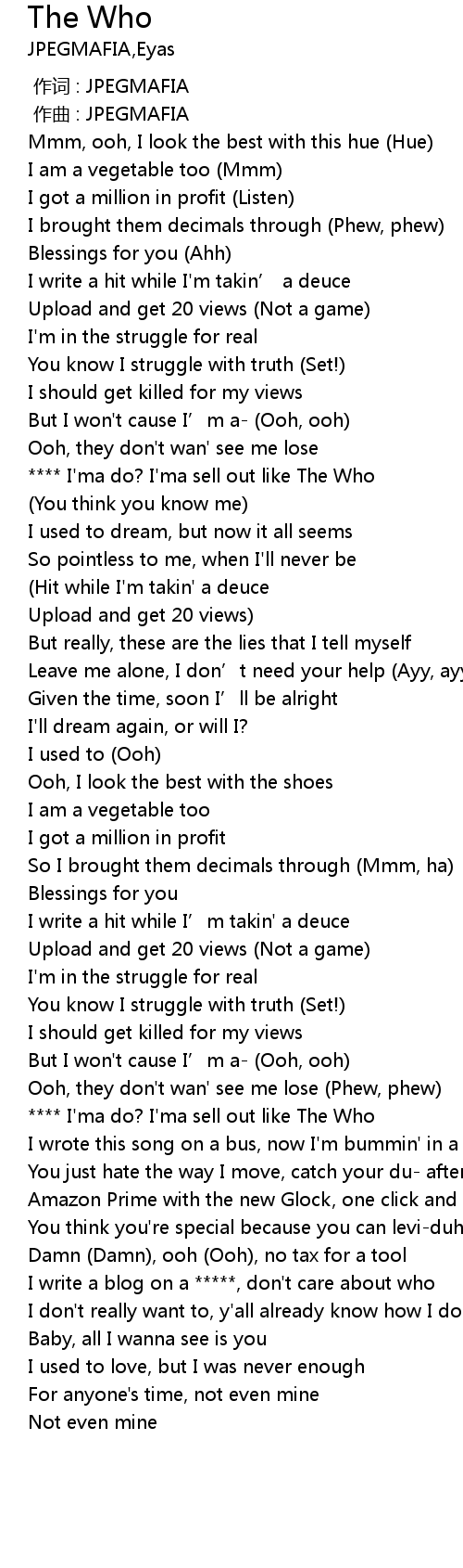 | [00:00.000] | 作词 : JPEGMAFIA |