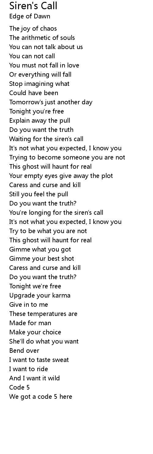 You're longing for the siren's call |