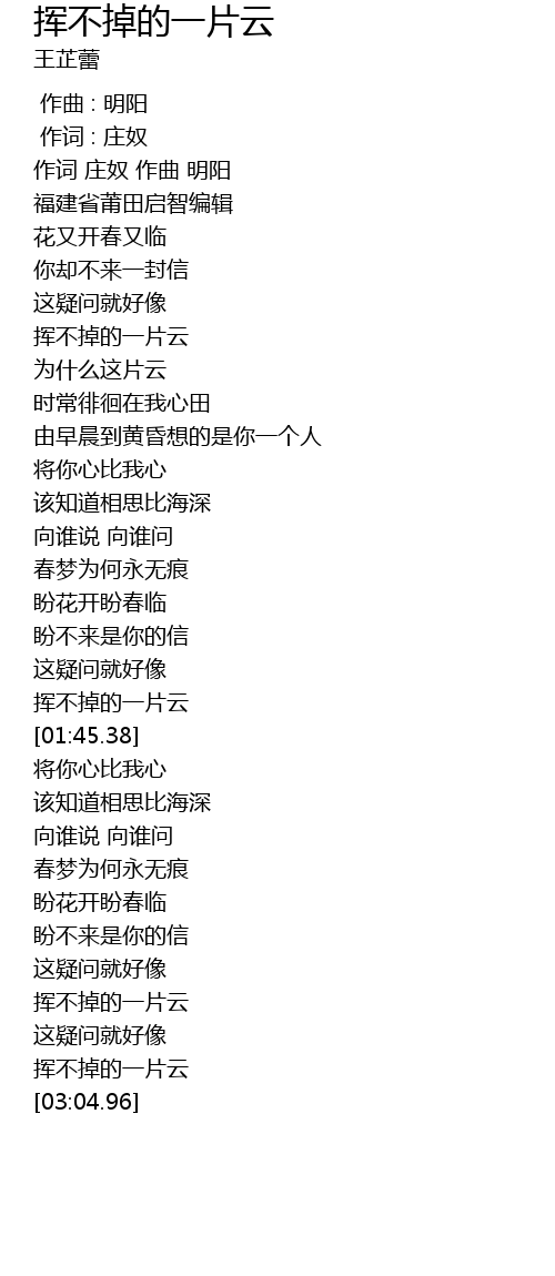 | [01:39.63] | 挥不掉的一片云 |