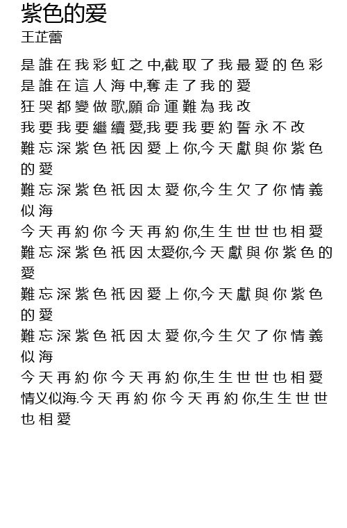 | [02:35.18] | 難 忘 深 紫 色 祇 因 太愛你,今 天 獻 與 你 紫 色 的 愛 |