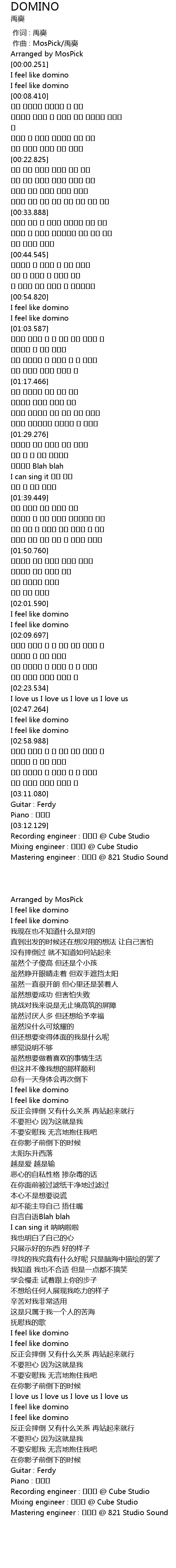 | [00:00.501] | I feel like domino |