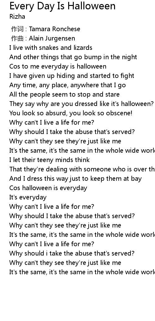 | [01:12.241] | They say why are you dressed like it' s halloween? |
