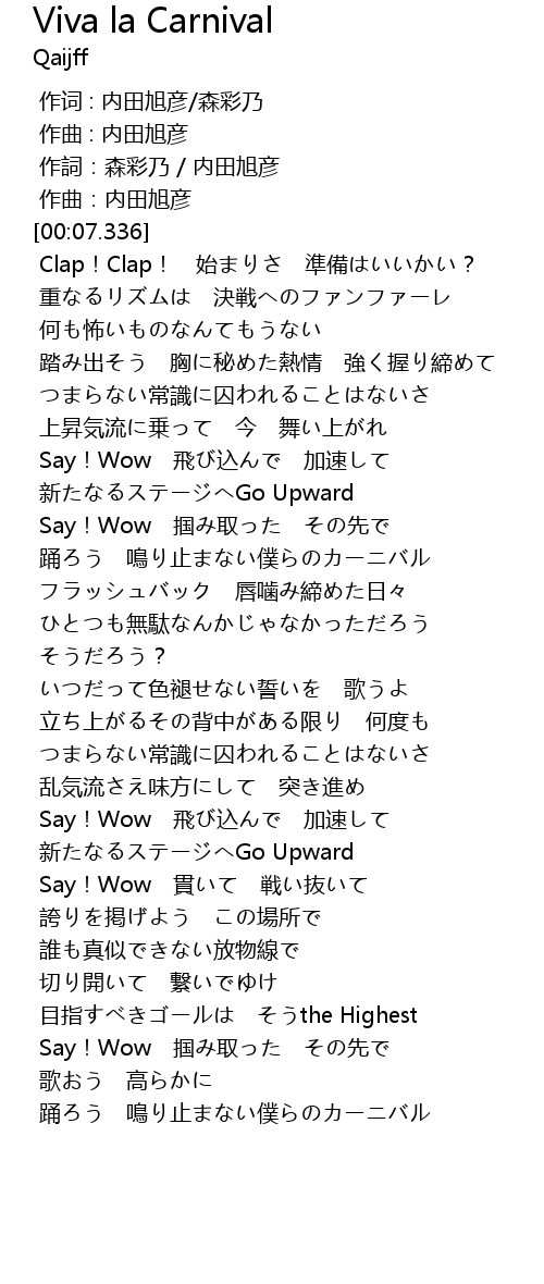 | [03:37.256] | 踊ろう 鳴り止まない僕らのカーニバル |