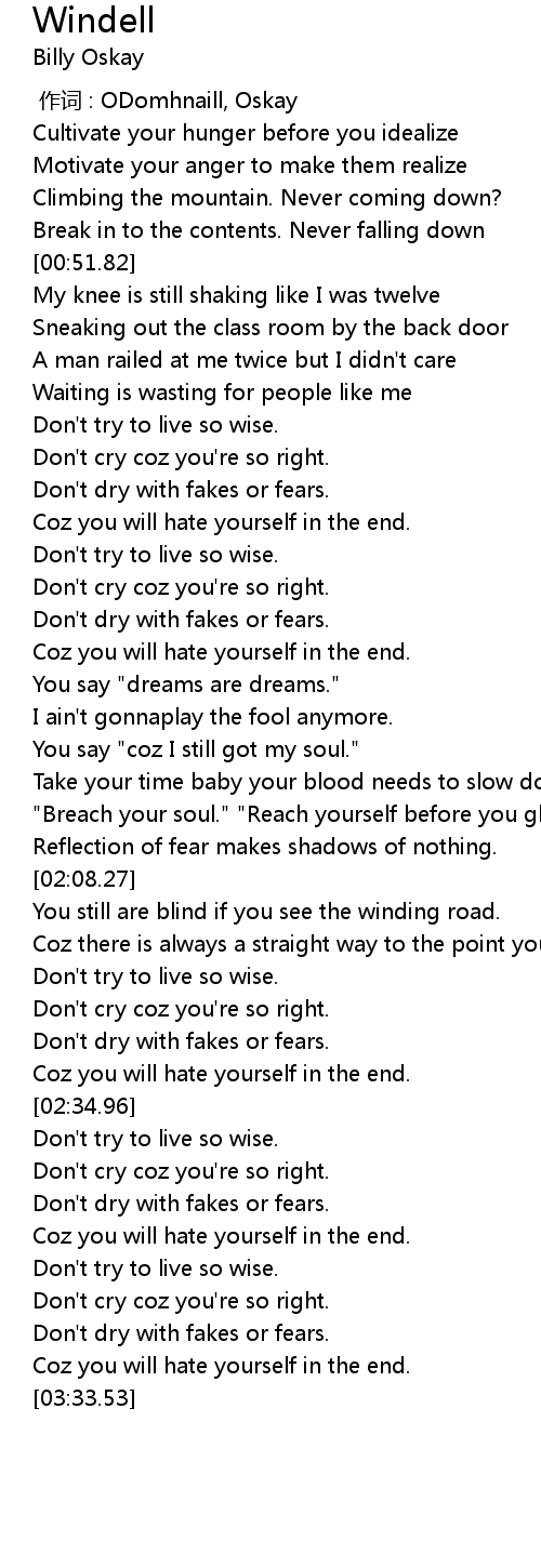 | [03:15.43] | Coz you will hate yourself in the end. |