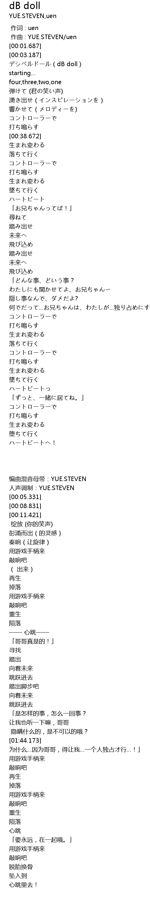 | [00:00.843] | zuò qǔ : YUE. STEVEN uen |