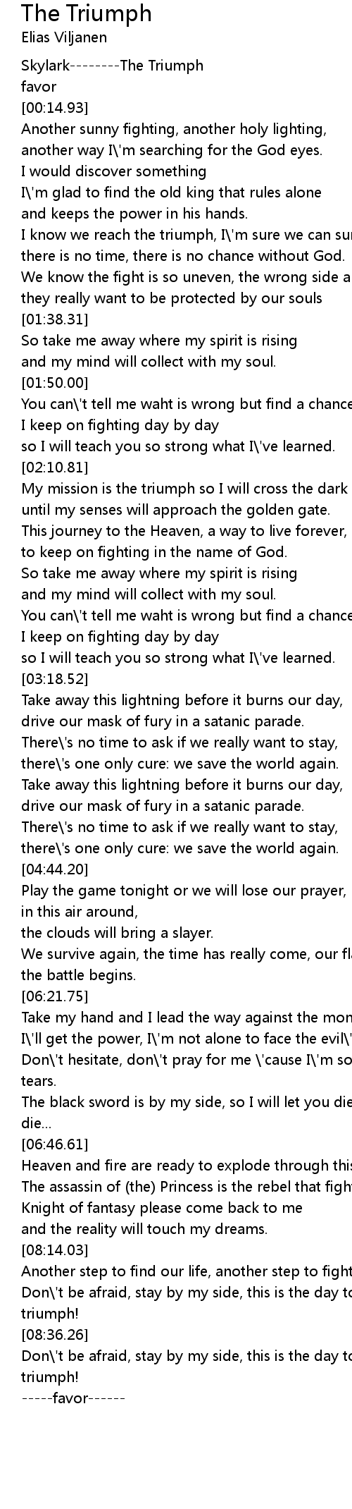 Don\'t be afraid, stay by my side, this is the day to find our triumph! |