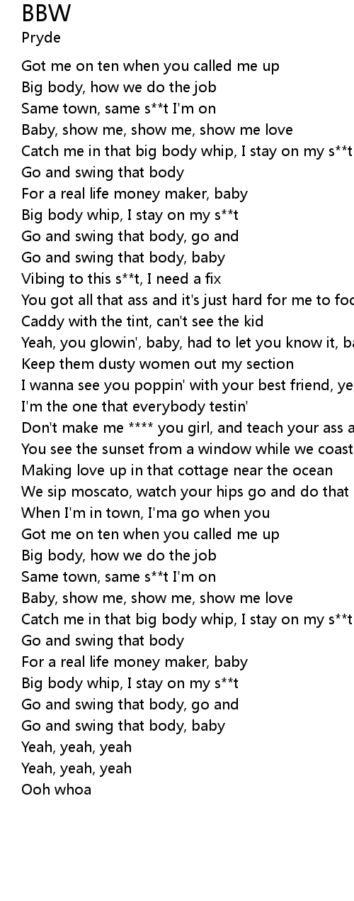 | [00:31.56] | Big body whip, I stay on my s**t |