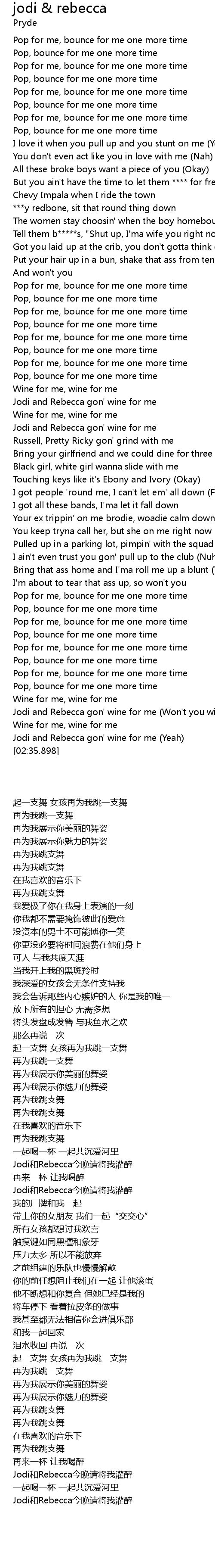 | [02:33.233] | Jodi and Rebecca gon' wine for me (Yeah) |