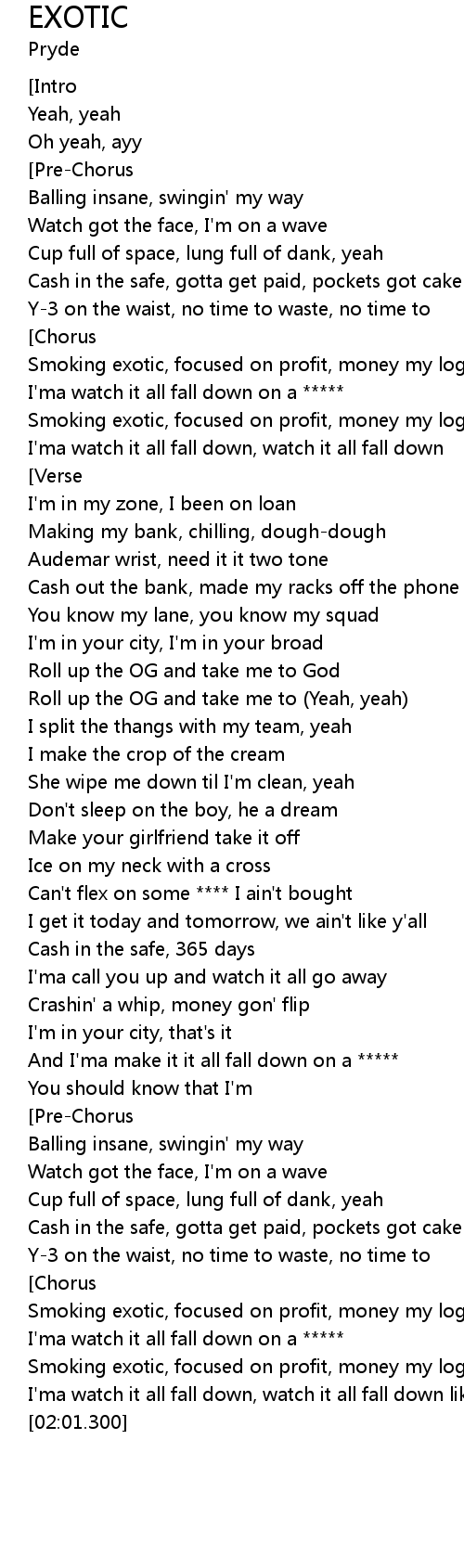 | [01:38.661] | Cash in the safe, gotta get paid, pockets got cake |