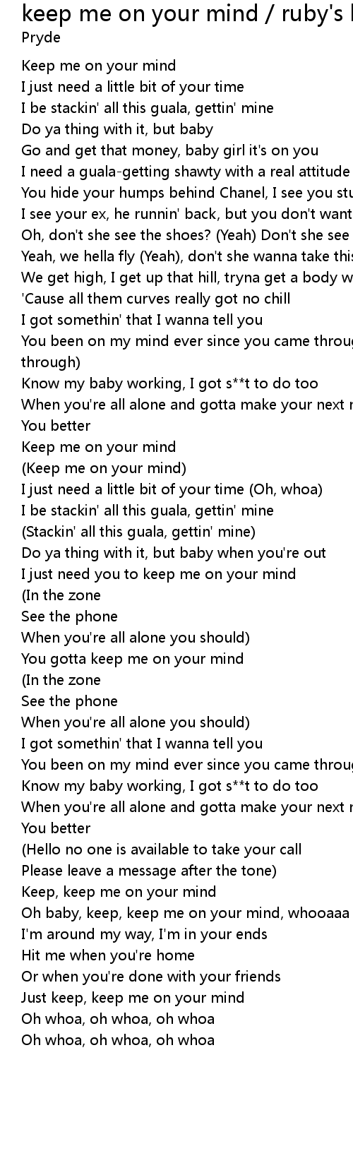 | [01:47.894] | Oh baby, keep, keep me on your mind, whooaaa |