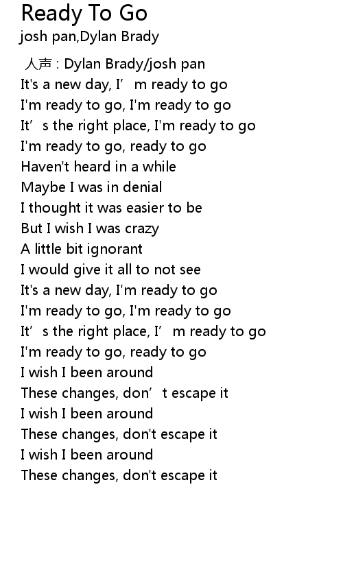 | [00:20.30] | I'm ready to go, I'm ready to go |
