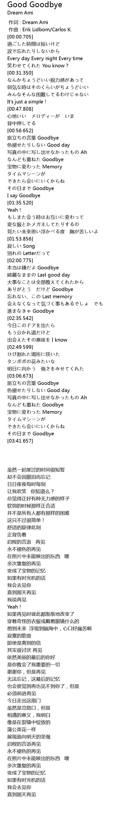 | [03:22.681] | なんども重ねた Goodbye |