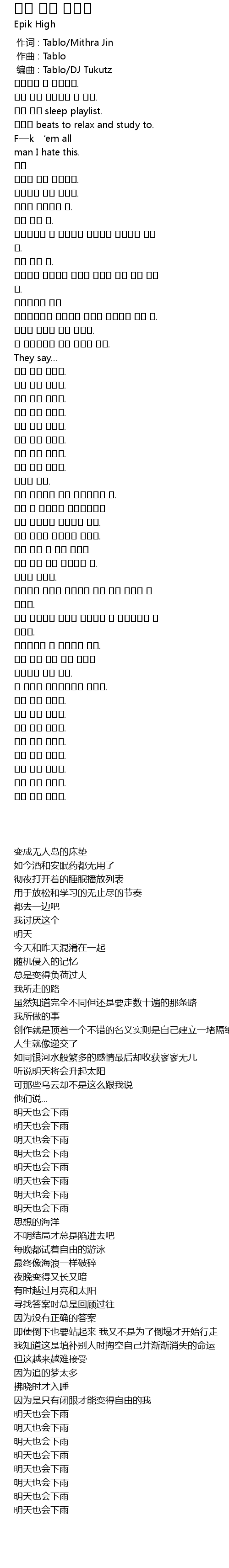 | [00:00.000] | 作词 : Tablo/Mithra Jin |