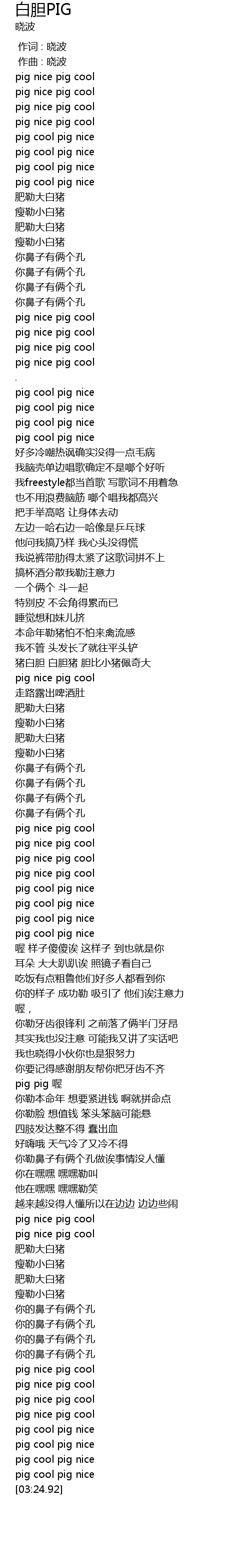 | [01:36.05] | 猪白胆 白胆猪 胆比小猪佩奇大 |