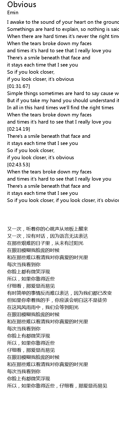 | [03:18.13] | So if you look closer, if you look closer, it's obvious. |