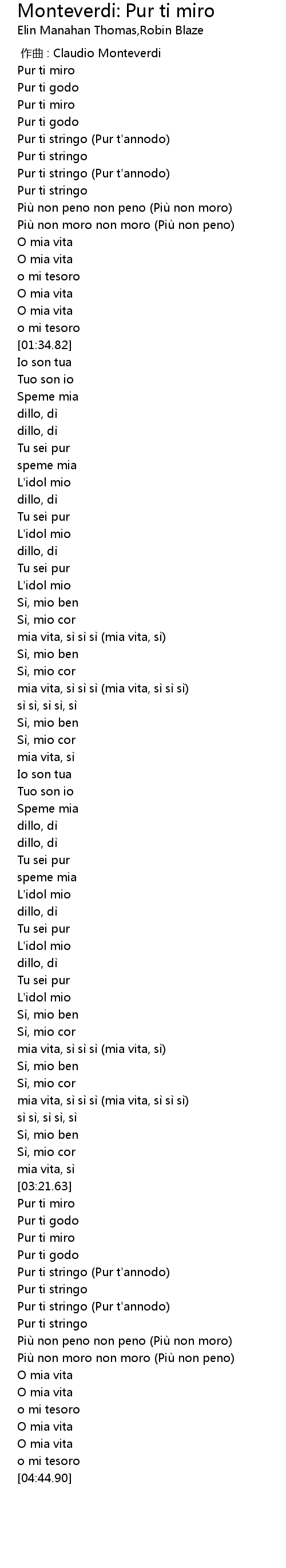 | [00:29.69] | Pur ti stringo (Pur t'annodo) |