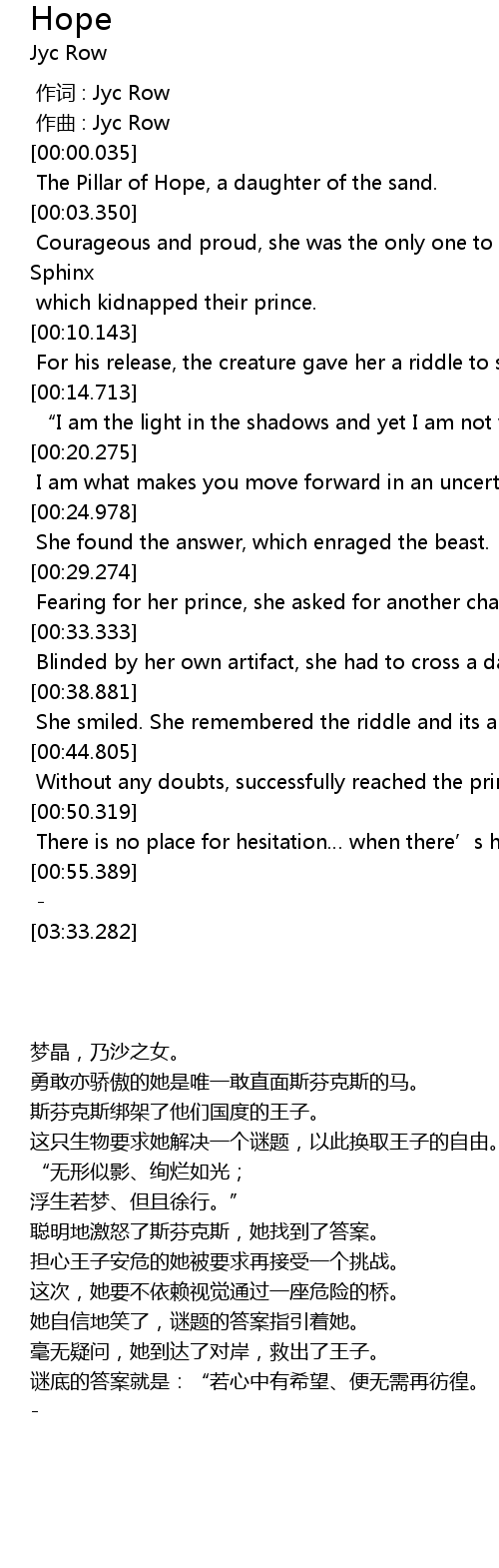 | [00:00.538] | The Pillar of Hope, a daughter of the sand. |