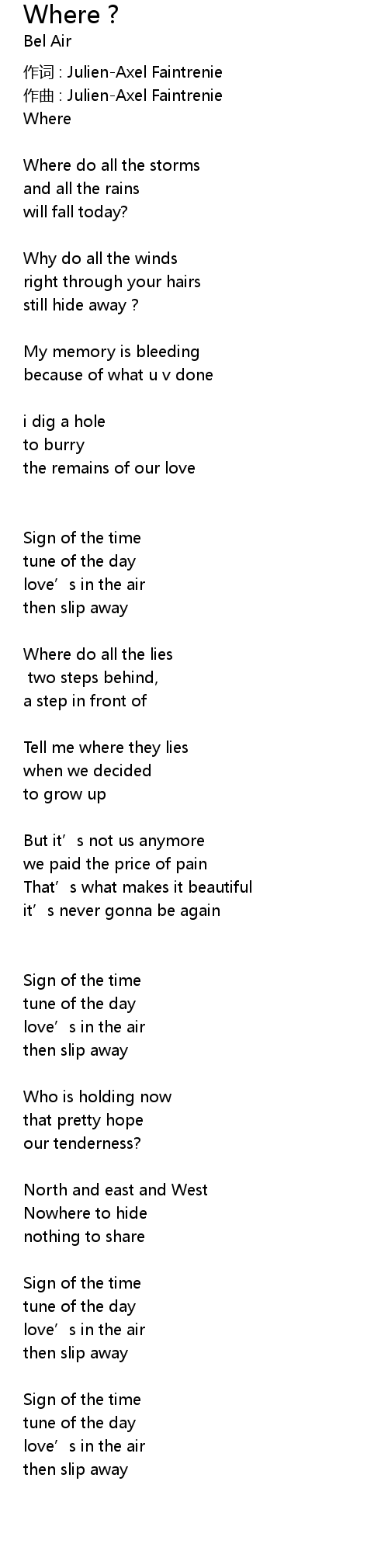 | 作词 : Julien-Axel Faintrenie | |