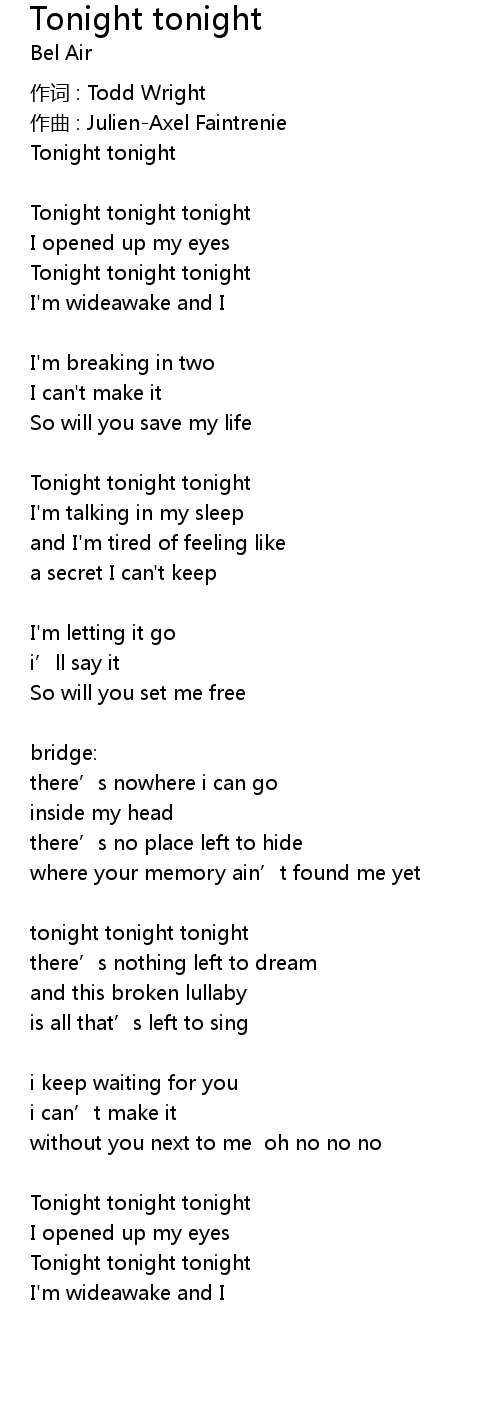 | tonight tonight tonight | |