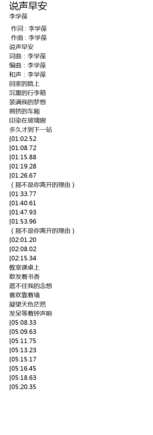 | [04:32.40][02:15.34] | 天快亮 和你 说声早安 |