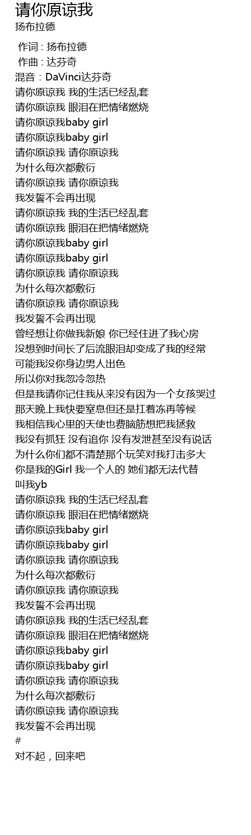 | [00:30.902] | 请你原谅我 请你原谅我 |